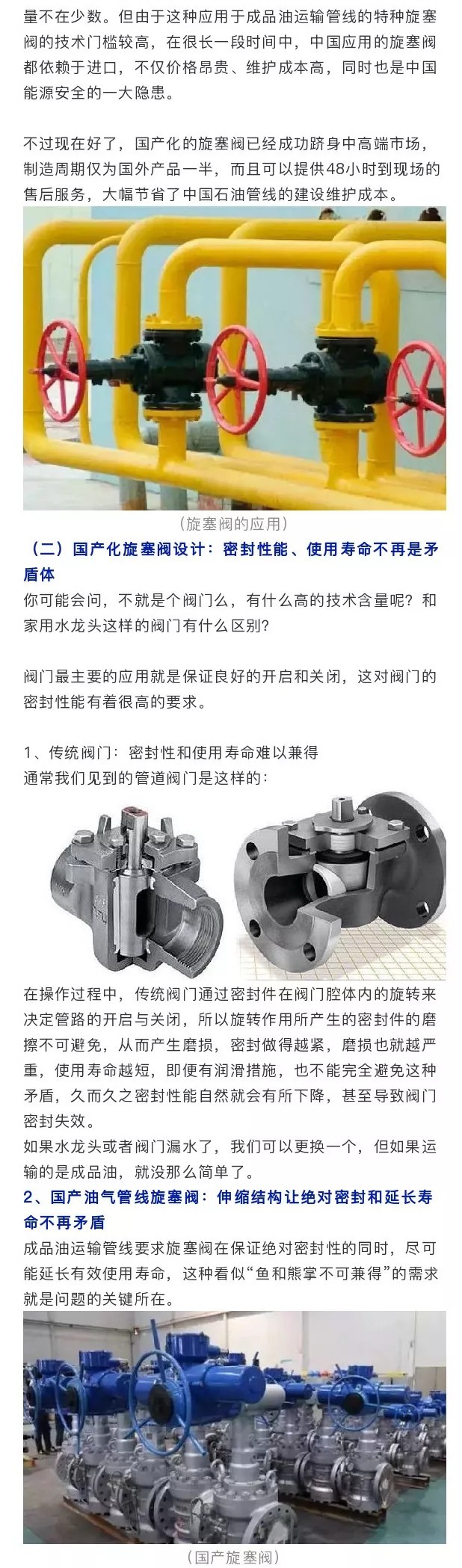 中國自主研制的雙關(guān)雙斷旋塞閥擁有自主知識產(chǎn)權(quán)的核心技術(shù),達(dá)到國際先進水平,經(jīng)過了市場的考驗多次成功中標(biāo),成功打破國外產(chǎn)品的長期壟斷,有望在今后的市場競爭中逐步替代原有進口閥門,確保國家能源供應(yīng)安全。