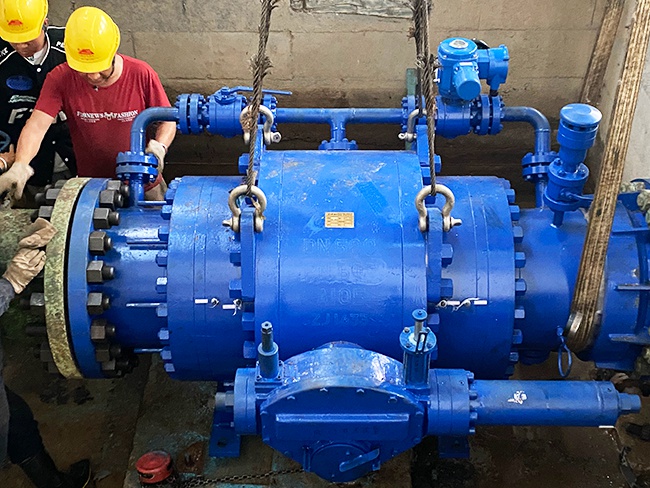 四川天閥公司派人實地勘驗后,制定了初步技改方案。進水球閥使用帶上下游密封環(huán)的水電專用球閥。2021年5月,天閥公司將制作完成的球閥運送到電站現(xiàn)場,適逢電站豐水期,不利于停水安裝。2021年底,新冠病毒爆發(fā),地處云南邊陲的大寨河成為了疫情防控重點地區(qū),深能源與天閥公司與相關部門溝通,多方努力都未達成安裝時間共識。